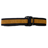 Taking inspiration from the suede pocket tee - this striking belt uses a strip of faux suede to create a color-block effect on top of the black cotton base.