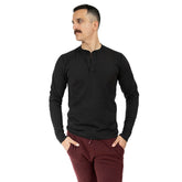 Black Heavyweight Army Surplus Long Sleeve Henley Shirt