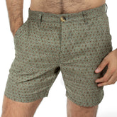 Khaki Japanese Floral Mosaic Print Cotton Shorts - Made in USA