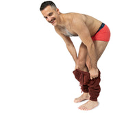 The burgundy/black is designed to give you that same 'hug' in a new tri-blend cotton/poly/rayon fabric.