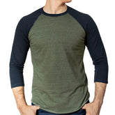Olive & Navy Contrast Tri-Blend 3/4 Sleeve Baseball Tee