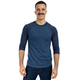 Tonal Blue Heather Contrast 3/4 Raglan Sleeve Baseball Tee