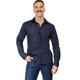 COLBY Long Sleeve Shirt in Navy Japanese Textured Print