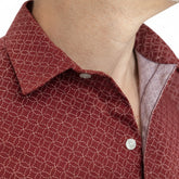ETHAN Long Sleeve Shirt in Brick Red Geometric Floral