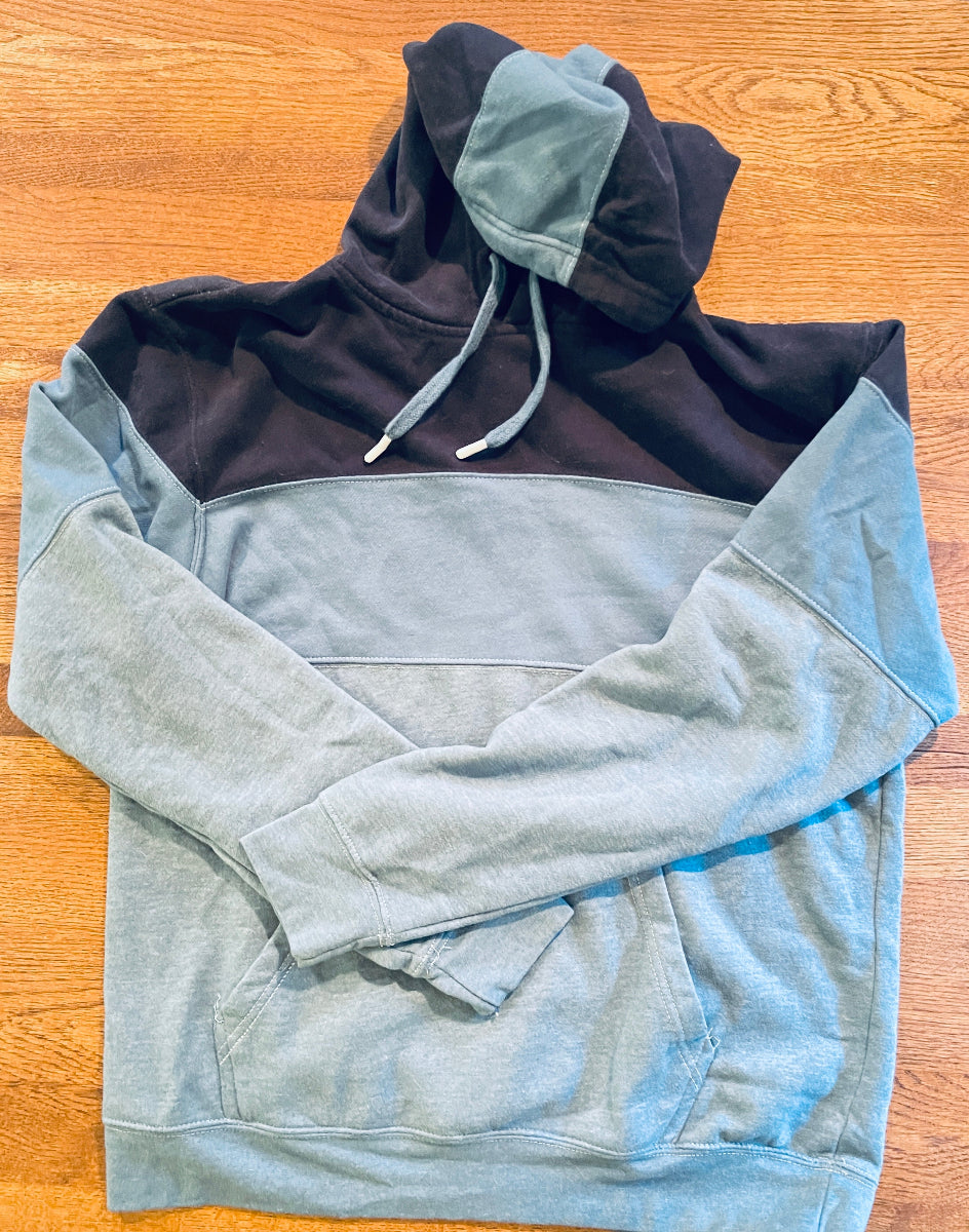 #21-10 Sample Sale: Teal Colorblock Popover Hoodie Size MEDIUM#21-10 Sample Sale: Teal Colorblock Popover Hoodie Size MEDIUM