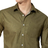 GARVER Long Sleeve Shirt in Olive All Over Japanese Solid Denim-Like Print