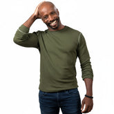 Military Green Contrast Stitch Textured Long Sleeve Layering T-Shirt