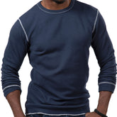 Navy Officer Blue Contrast Stitch Textured Long Sleeve Layering T-Shirt