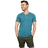 THE "SLUGGER" Short Sleeve Henley Tee in Teal Blue (SIZE S)