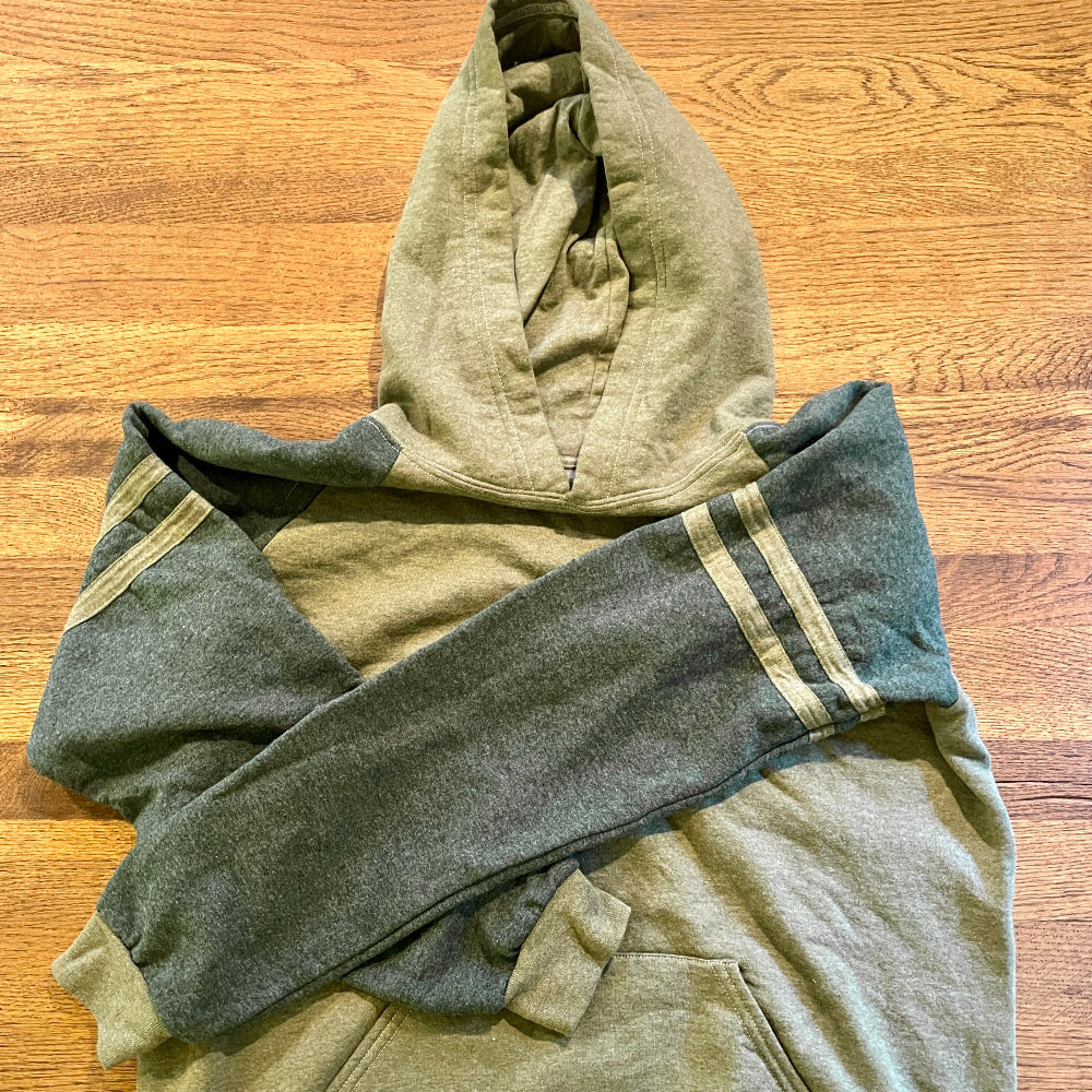 #18-10 Sample Sale: Tonal Olive Green Varsity Stripe Popover Hoodie Size MEDIUM