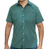 CHARLESTON Short Sleeve Shirt in Teal Green Japanese Wave Print