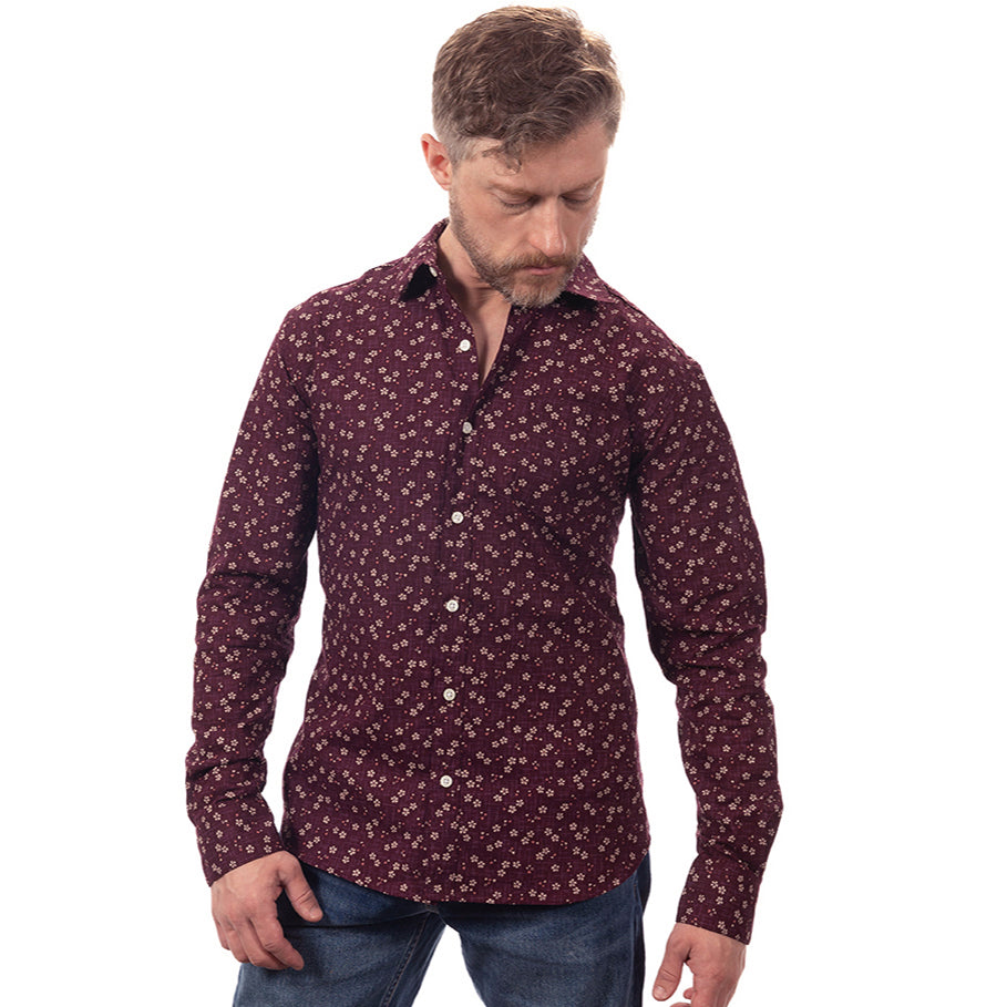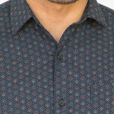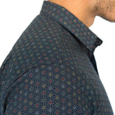 CLARKSON Long Sleeve Shirt in Navy Blue Geometric Floral