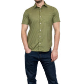 GARRISON Short Sleeve Shirt in Light Olive Green Japanese Floral Print