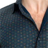 MICHAEL Short Sleeve Shirt in Navy Blue Japanese Geometric Floral Print