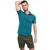 THE "HURLER" Organic Cotton Jersey Polo Shirt in Teal Blue (Size S)
