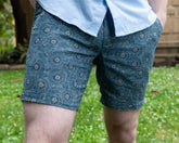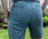 Sea Blue Japanese Fans Print Cotton Shorts - Made in USA
